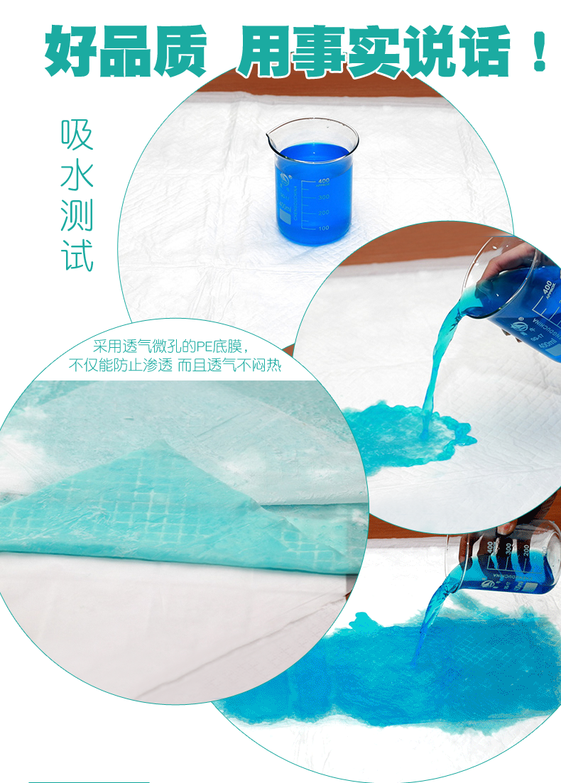 傳統隔尿墊只能起到隔尿的作用,而吸收不了大量的尿液,般舟成人護理床墊可以瞬間吸收大量水分,不滲漏,不反滲。即使老人尿量再大,也不用擔心一不小心將床單床墊尿濕。